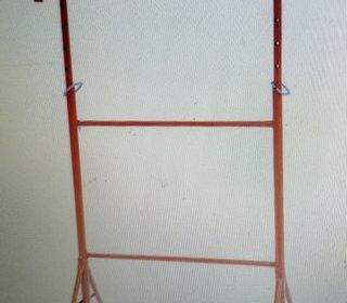 Support en métal de couleur rouge, composé de deux pieds avec barre transversale, utilisé pour le maintien ou la pose d'éléments de construction. Hauteur ajustable , quantités 4 p