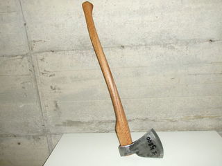 A vendre Belle Hache estampillée Bret P49 restaurée (forgée sur le bord de la FURE à Charavines en Isère 18ème -1969) traité, aiguisée(finie à la pierre) manche de 77cm galbé en eu