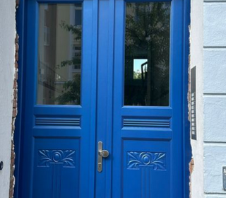 Porte d'entrée chêne massif rénovation immeuble haussmannien Porte d'entrée haute en chêne massif destinée à la rénovation d'immeubles parisiens de caractère. Proportions é