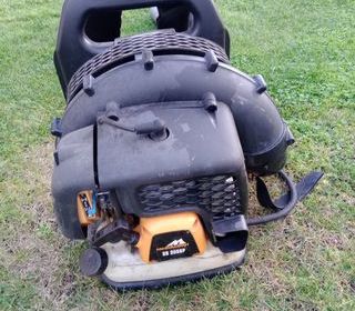 Souffleur thermique de jardin de marque McCulloch, modèle GB 355BP, avec harnais de transport intégré.