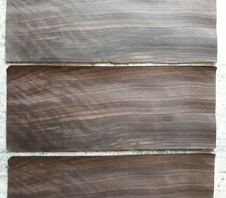 3 feuilles de placage d'ébène de Macassar Dimensions 0,40 X 0,15 soit 0,18 m² Prix des 3 feuilles 20 €