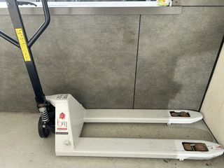 Suite à cessation d'activité vend mon transpalette manuel 2,5 T en très bonne état acheté chez " Beauce Matériel " Double galets 1150 cm Châssis tôle de 3 mm Peinture par syst