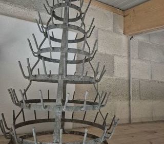 Un égoutoir à bouteilles en acier galvanisé, en très bon état. Pouvant recevoir jusqu'à 100 bouteilles.