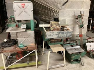 Vend machine kity ,aspirateur, scie circulaire et à ruban, tour à bois, raboteuse, mortaiseuse, affûteuse de lame plus tiroir d outillage