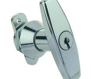 MATERIEL NEUF VISITE POSSIBLE Poignée à clé 1127 chromée avec came1095-755 2 clefs RONIS La poignée verrou Ronis 1127 s'utilise pour les coffrets d'armoires électriques. L