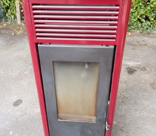 Vend Poéle a granulés bois marque Invicta 7 kw couleur rouge H 108 cm l 47 cm prof 48 cm sortie de fumée arriére basse 80 garantie sept 2026 état neuf servis 3 mois 800 € a débat