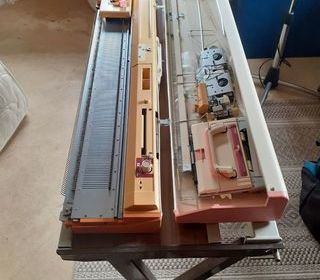 Donne machine à tricoter, programmable, nombreux motifs ; peignes en excellent état, avec tous ses accessoires. Après familiarisation, la machine sort un pull personnalisé en une h