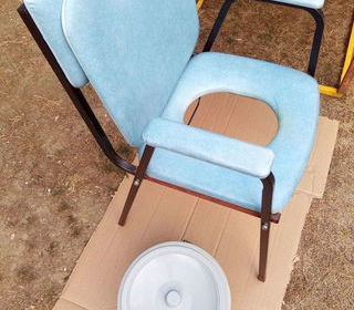 Chaise garde-robe/de toilettes. Pour personne à mobilité réduite. Avec le seau amovible. Revêtement imperméable, pour un nettoyage facile. Dimensions de l'assise profondeur