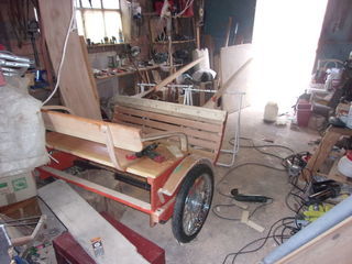 Carriole à âne ou poney, pour 3 adultes, construction artisanale, frêne et douglas. Manque de place!!