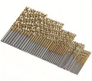 Jeu de 50 forets en acier rapide, forets hélicoïdaux revêtus de titane pour le métal, le bois, le plastique - Spirale conventionnelle, queue filetée Les outils de forage sont en