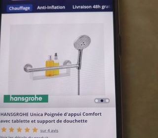 poignée de maintien avec porte produit et porte pomme de douche neuve envoi possible en plus si mail laisser Tà‰Là‰PHONE merci
