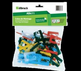 8 sachets neufs - prix unitaire du sachet 5€ le sachet contient 21 cales : 7 cales de chaque couleur, bleu 2 mm - rouge 3 mm - vert 5 mm Les cales de montage sont des pièces en p