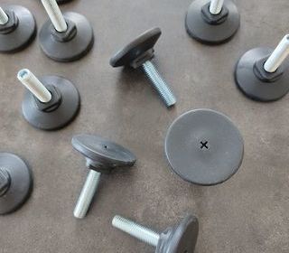 Pieds / patins de nivellement ou stabilisation avec tige filetée neufs, permet de régler la hauteur ou caler un équipement, meuble, DIY, etc... Poids 40 grammes par patin Diamè