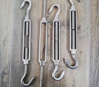 Tendeur tire fort M8 en acier inoxydable 316 de haute qualité marine pour voile d'ombrage. Le tendeur Ø8mm est réglable en longueur de 18 à 28 cm pour régler au mieux la tension d