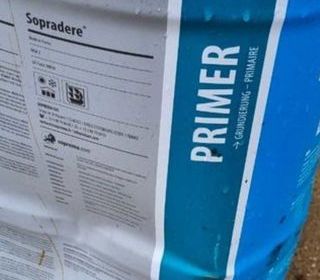2 bidons de primaire d'accrocher soprema pour rouleau de goudron un rempli à la moitié et l'autre est pleins 42 euros les 2