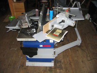 vds machine à bois Lurem Maxi 26 Plus - 6 fonctions : scie circulaire - dégauchisseuse - raboteuse (2 jeux de couteaux ) - mortaiseuse - toupie -tenonnage - avec tous ses accessoir