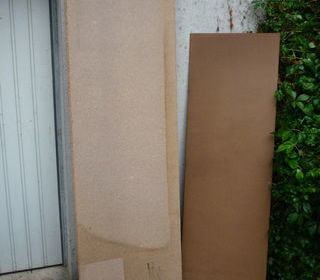 Panneau aggloméré 61cm x 205cm x 15mm (5 plaques)(retiré) panneau isorel 54cm x 160,5cmx 3mm (14 plaques) 5€ le panneau