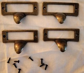 C'est donc un lot de 4, résultant d'un double emploi. En acier, aspect vieux bronze. Réservées au mobilier ou tiroir. Dimensions sur photo. 8 vis sont fournies. Bon bricola