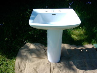Lavabo Villeroy et Boch sur colonne en céramique blanche Lavabo 3 trous. Dim : 56 x 48 cm Colonne. Dim : Hauteur 68 cm Bon état