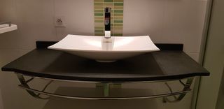 Disponible dans son caisson d'origine un plan en ardoise galbé neuf de haute qualité (modèle identique à la photo). Dim: 120 cm x 60 cm épaisseur 22 mm. Prix à débattre. (prix d'ac