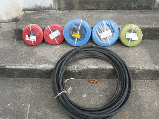 cinq rouleaux de conducteurs électriques de 100 mètres chacun, comportant : 2 rouleaux en 1,5 millimètres carré 3 rouleaux en 2,5 millimètres carré 1 câble 5 G de 10 milli