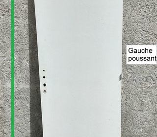 Vends une porte d'intérieur : - Matière de la porte : bois. - Porte GAUCHE poussant. - Couleur : blanc. - Serrure fournie. - Cadre de porte Non fourni. - Gonds de porte fourn