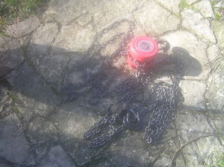 Palan à chaîne. Poids de levage: 1 tonne. Hauteur de levage: 3 mètres Etat neuf (jamais utilisé) A prendre sur place.