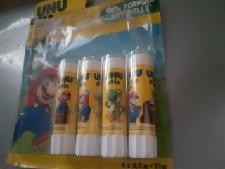 Colle stick uhu de 8.2g lot de 4 neuf avec mario dessus L'unité 1€ Vendu 3.24 euro les 2 au leclerc Le lot 2.20€