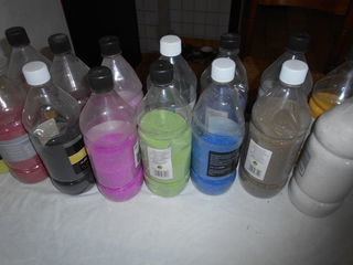 sable de decco pour bouteilles ou vase pour atelier creatif avec des enfants 15 bouteilles et 40 petites 40e le tout