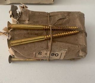 20 Vis à Bois Laiton Tête fraisée 6 x 90 Ø De la tête 12 mm Vis ancienne de qualité, comme neuve jamais utilisées Poids total 324 gr (possibilité d'acheter + de 100 vis)