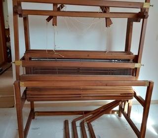 A saisir : Vente d' un métier à tisser neuf, il n'a jamais été mis en service. Fabriqué en bois par un artisan, il possède 4 cadres et 4 pédales. Structure solide. 125 lisses m