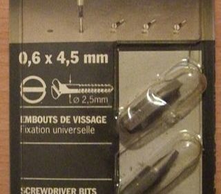 lot de 3 embouts de vissage fixation universelle Triplex 0,6 x 4,5 mm, article neuf livré dans blister d'origine