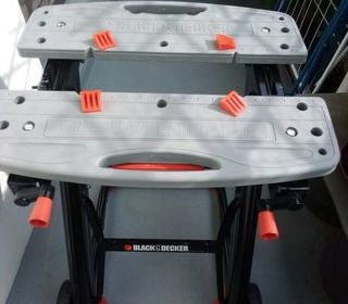 Etabli-étau pliable Black et Déker peu encombrant Occasion très bon état, peu servi - Dimensions : Hauteur 74 - Longueur 55,5 - largeur ouvert 48,5 (fermé 37) A prendre