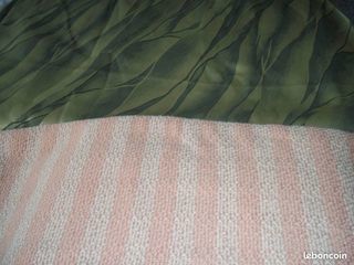 Tissus vert en polyamide pour dessus de lit ou bien pour des rideaux Dimension une longueur de 4 m x 2.80 m et de deux rideaux de 2.10 m x 1.30 m le tout 30 euros pas de détai