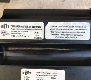 Transfos de sécurité 230V 12V 300VA fonctionne très bien avec des lampes led attention de ne pas dépasser 300W de puissance vente à l?unité possible