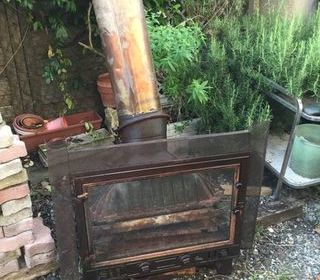 Insert complet de cheminée en fonte cheminée PHILIPPE. Insert avec foyer de 60 Insert vendu avec son réducteur pour tuyau en 180 et son tuyau en 180 Dimensions façade