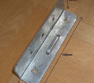 équerres d'assemblage 25 mm x 35 mm x 135 mm épaisseur 2 mm, acier zingué, conviennent pour fixation traverse de lit ou autre. Disponibles : 4 1 euro l'unité tél ou