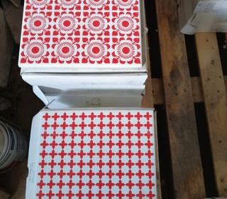 faïence neuve dans les boîtes 20x20 a 1 euro le carreau