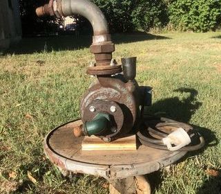Vends motopompe moteur triphasé 2800 tr/mn, pression maxi 2,5 bars, aspiration et refoulement diamètre 34 millimètres (peut être équipé en plus gros). Convient pour transvasement o