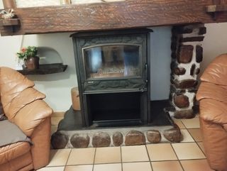 Poêle a bois supra très bon état Grand foyer pour bûches de 55cm avec bûcher dessous Ventilateur derrière qui renvoi la chaleur sur le devant a deux vitesses dont l'une automat