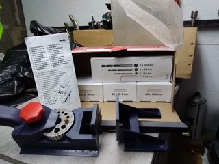 c'est un appareil gradué très simple à s'en servir , vendu complet (( mèches à bois neuves jamais servit , avec trois bois tourilons en bois diamètres de 6 / 8 / 10 / mn qui corres