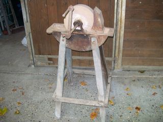 Meule à eau sur pied,la pierre est fendue d'un coté. Nous sommes dans la région de Brionne 27.