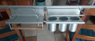 Barre 1.5m, en profilés alu, avec support rouleau essuie tout, et support 3 pots diam 8cm, le tout en aluminium