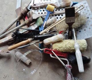 OUTILS DE PEINTURE en vrac : usagés, mais fonctionnels 1€ pièce neufs : 2€ pièce pinceaux, manches et manchons de rouleaux, grilles, goupillons, abrasifs... faites votre mar