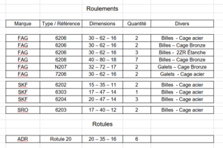 Vends lots de 26 roulements et 6 rotules, anciens mais neufs, dans emballage d'origine (papier, graisse) Voir liste (marque, dimensions et caractéristiques) dans les photos.