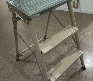 Vend escabeau 3 marches en aluminium et en métal. ? Hauteur au niveau de la 3ième marche : 65cm Disponible à Paris 12ième (Métro: Bastille) Aucun Envoi. A venir chercher su