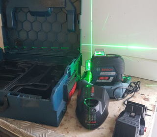 Laser ligne verte BOSCH GLL 3-80 CG ( EN TBE ) PRIX FERME batterie 12V chargeur rapide 3 lignes laser sur 360° Support universel BM 1 Platine de mesure laser pochette de rang