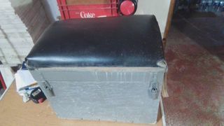 3 cannes une de 4,95men fibre de verre,1en bambou 3,20m ,un lancer leger de 1,78m un coffre faisant siege avec deux tiroirs et un caisson contenant 2 moulinetsdont un pour droitie