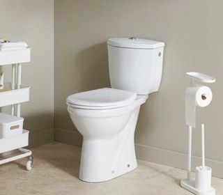 pack WC à poser complet comprend une cuvette surélevé avec bride, un réservoir, un mécanisme de chasse et un abattant. Il convient à un raccordement à partir de 22 cm du mur.*