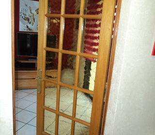 vends 3 portes bois exotiques petits carreaux largeur 0.73 H 202 dimension carreaux 0.16/0.28 2 ouvre a droite 1 a gauche a prendre sur place bon etats le lot 3portes poignees q